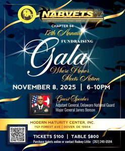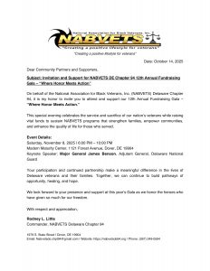 On behalf of the National Association for Black Veterans, Inc. (NABVETS) Delaware Chapter 94, it is my honor to invite you to attend and support our 12th Annual Fundraising Gala – “Where Honor Meets Action.”